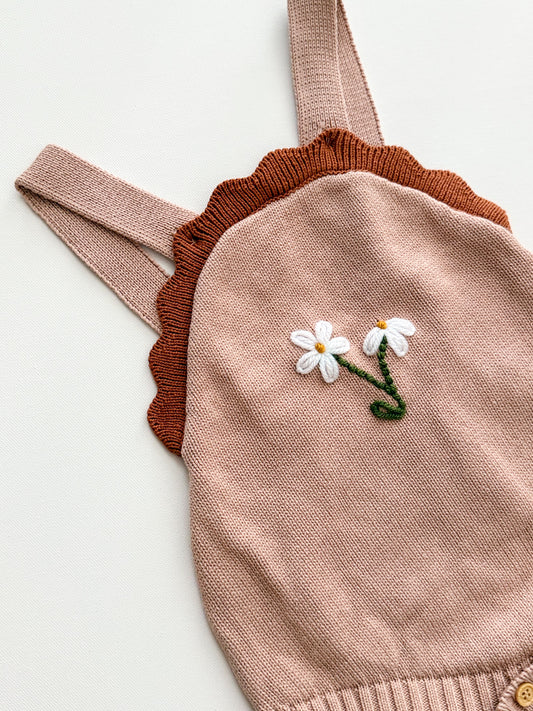 "Simple Blooms" Scalloped Knit Romper 3-6 M