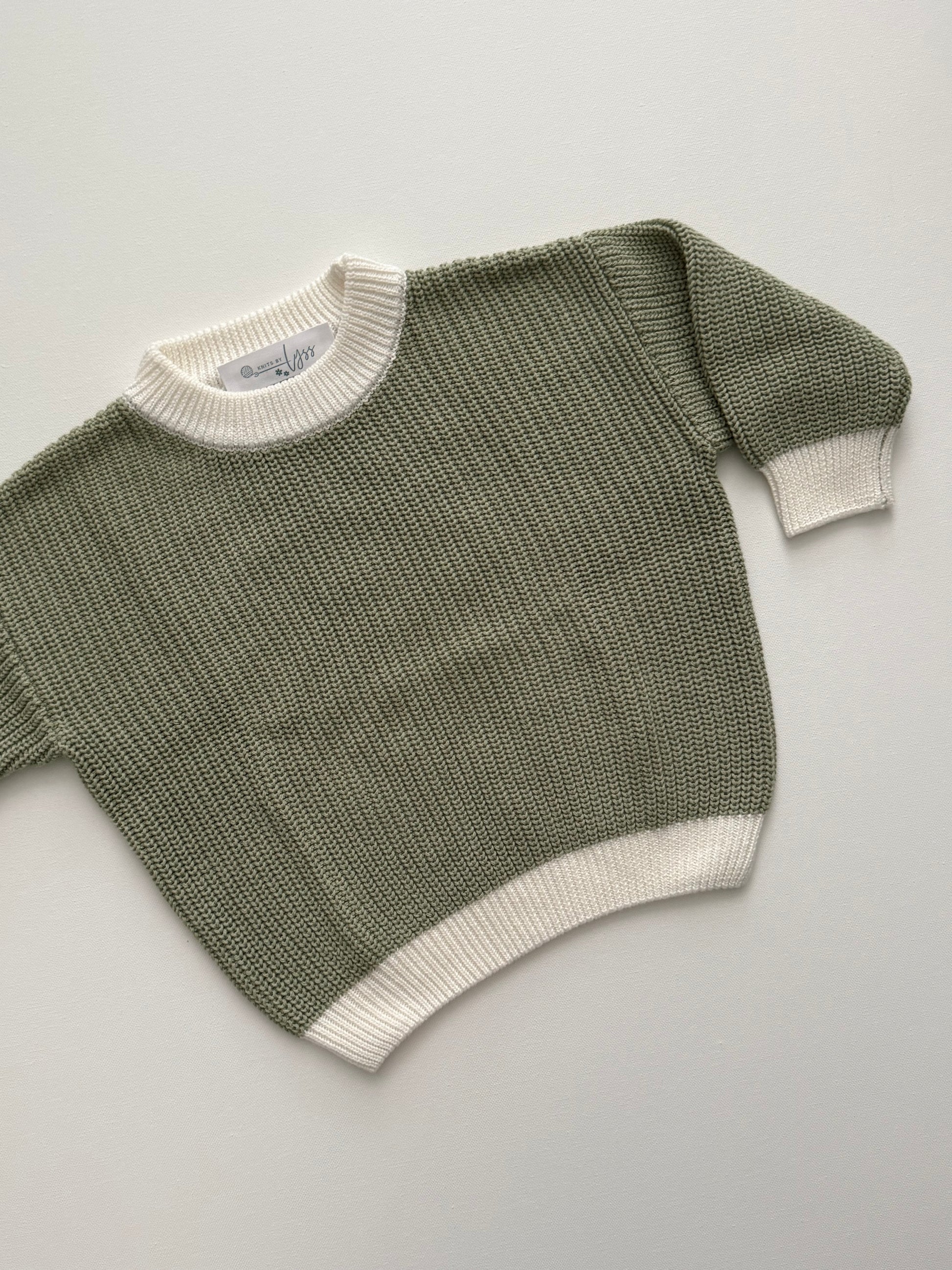 This eucalyptus green two tone sweater is 100% cotton. This set has been designed the same as our classic knitwear line with an oversized fit.